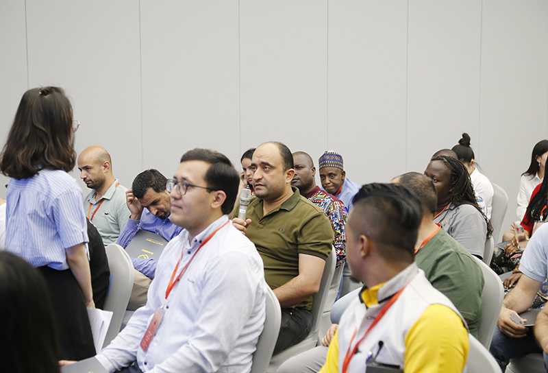 會上,鄭浩用英文介紹了杭鋼集團的概況以及冶金物資的經營發展情況,并與研修班學員互動,回答學員的現場提問。國際事業部相關業務負責人就具體業務內容與研修班學員進行交流。